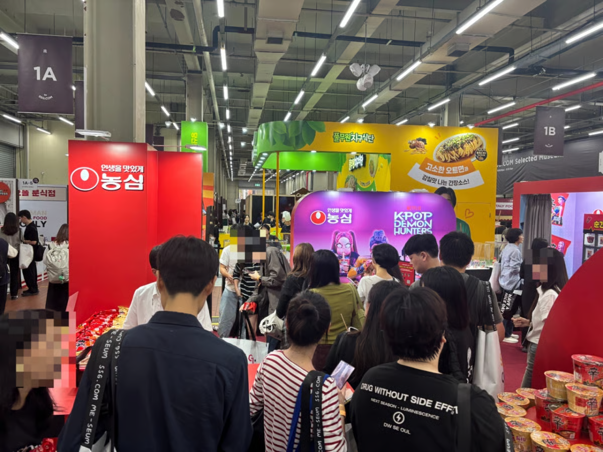 15일 오후 에스팩토리 D동에서 열린 SSG닷컴의 첫 오프라인 페스타 '미지엄(美지엄)'은 식품·뷰티·라이프스타일까지 온라인 주요 카테고리를 한자리에서 체험할 수 있는 공간으로 꾸려졌다. 사진은 페스타 속 농심 부스. /사진=하수민기자