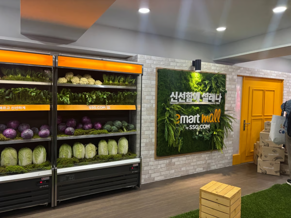 15일 오후 에스팩토리 D동에서 열린 SSG닷컴의 첫 오프라인 페스타 '미지엄(美지엄)'은 식품·뷰티·라이프스타일까지 온라인 주요 카테고리를 한자리에서 체험할 수 있는 공간으로 꾸려졌다. 사진은 2층 이마트몰 신선 라운지. /사진=하수민기자
