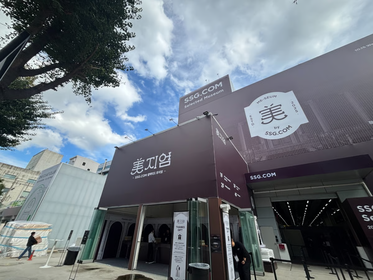 15일 오후 에스팩토리 D동에서 열린 SSG닷컴의 첫 오프라인 페스타 '미지엄(美지엄)'은 식품·뷰티·라이프스타일까지 온라인 주요 카테고리를 한자리에서 체험할 수 있는 공간으로 꾸려졌다. 사진은 미지엄 팝업스토어 외관. /사진=하수민기자